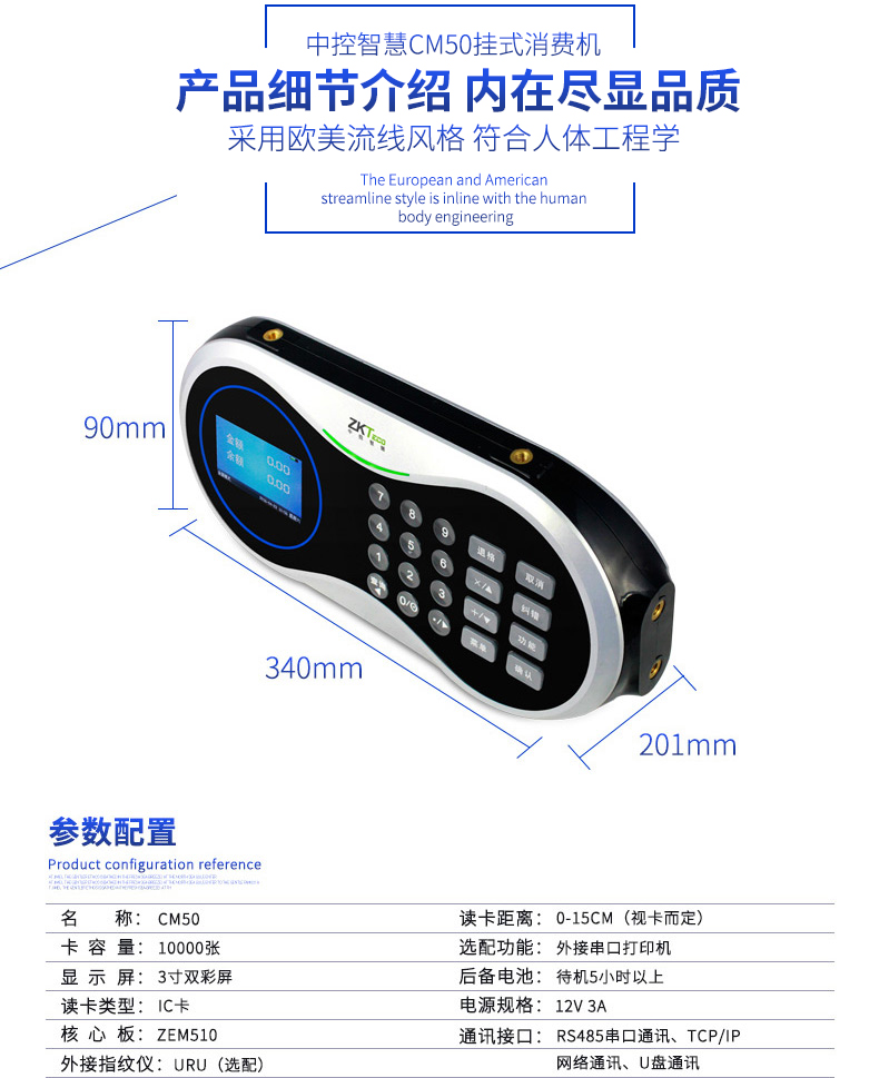 CM50離線式消費設備中控智慧食堂刷卡機